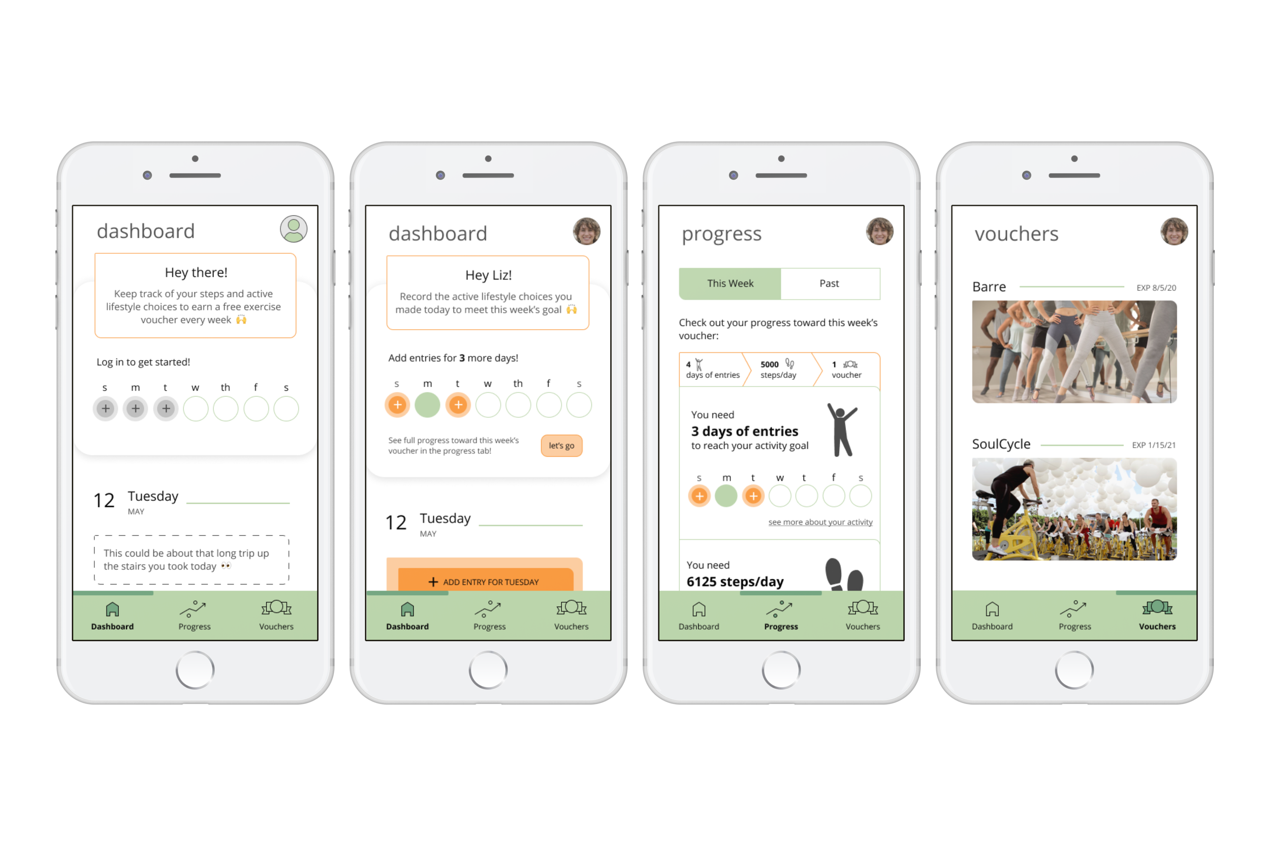 The problem I wanted to address was the difficulty full-time, sedentary workers have when adopting an exercise routine. Activate encourages users to start at the most basic level by simply making more active lifestyle choices per week. A weekly reward serves as external motivation, and by building internal motivation via visual depictions of their progress, users will be motivated to continue building a strong habit that can convert into an exercise routine beyond active lifestyle decisions.