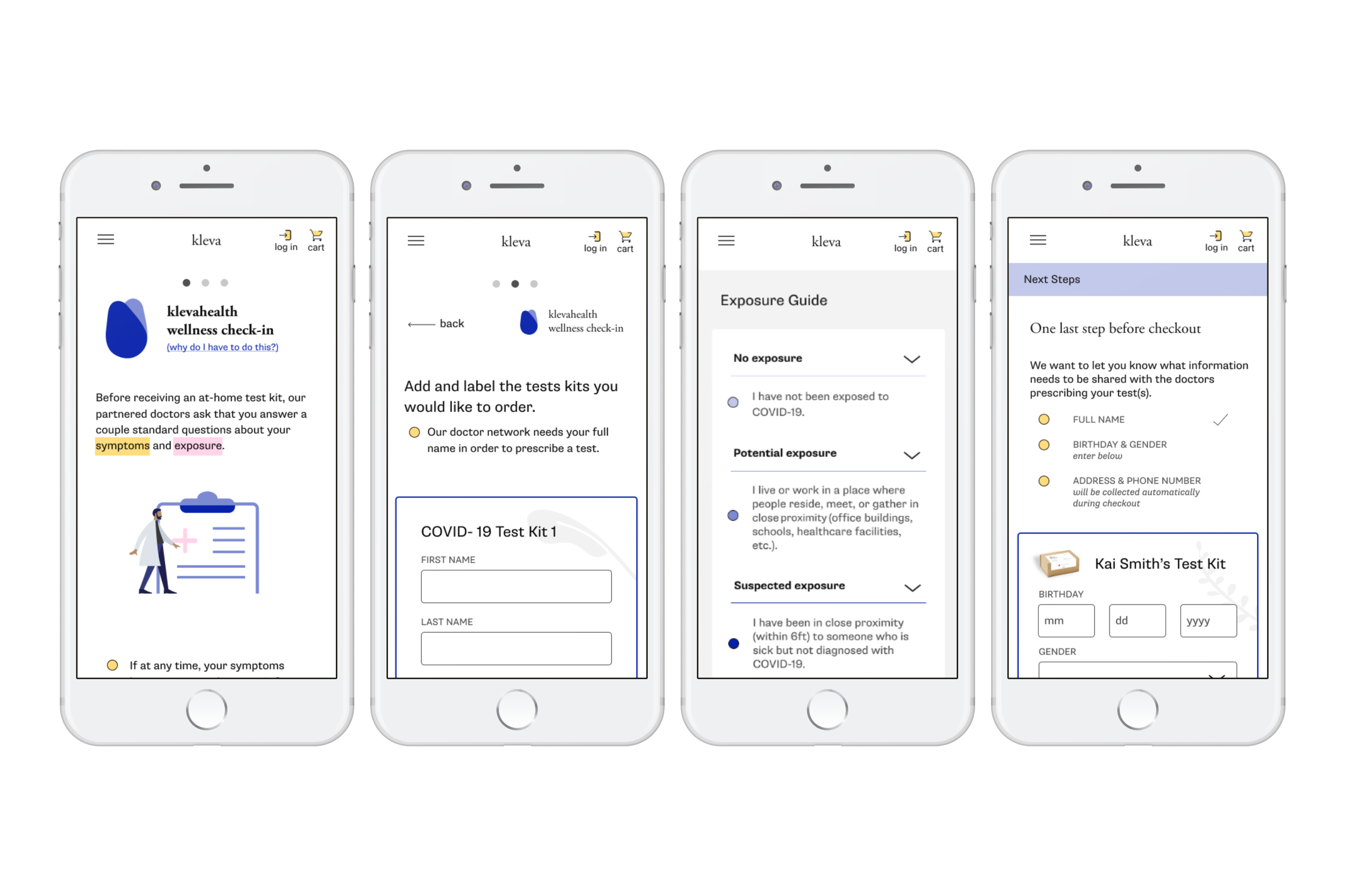Kleva is gearing up for their launch to provide at-home COVID testing. In preparation, I helped conduct user interviews, usability testing, and created wireframes and high-fidelity prototypes in mobile and desktop views, focusing mainly on the E-Commerce interfaces.